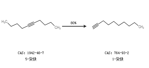 1.通过5-癸炔合成1-癸炔,收率约80%;