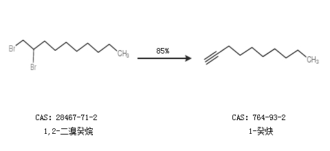 2.通过1,2-二溴癸烷合成1-癸炔,收率约85%;