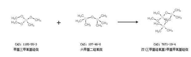 1.通过甲基三甲氧基硅烷和六甲基二硅氧烷合成双(三甲基硅氧基)甲基甲氧基硅烷