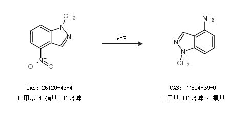 1.通过1-甲基-4-硝基-1H-吲唑合成1-甲基-1H-吲唑-4-氨基,收率约95%;