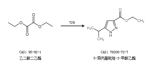 2.通过乙二酸二乙酯合成5-异丙基吡唑-3-甲酸乙酯,收率约72%;