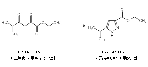 1.通过2,4-二氧代-5-甲基-己酸乙酯合成5-异丙基吡唑-3-甲酸乙酯