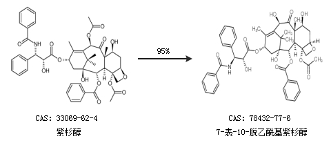 1.通过过氧化氢和紫杉醇合成7-表-10-脱乙酰基紫杉醇,收率约98%;