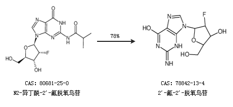 1.通过N2-异丁酰-2''-氟脱氧鸟苷合成2''-氟-2''-脱氧鸟苷,收率约78%;