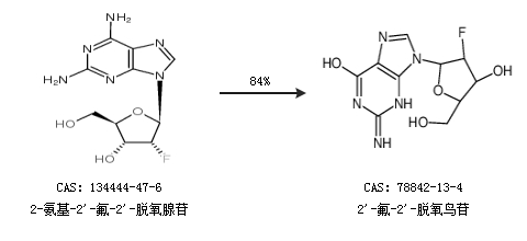 2.通过2-氨基-2''-氟-2''-脱氧腺苷合成2''-氟-2''-脱氧鸟苷,收率约84%;