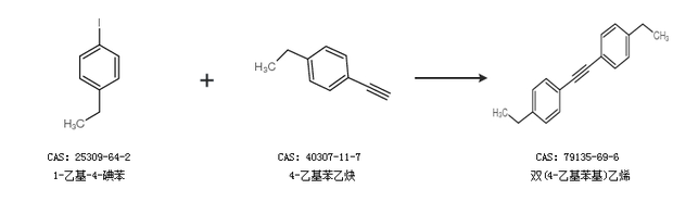 2.通过1-乙基-4-碘苯和4-乙基苯乙炔合成双(4-乙基苯基)乙烯