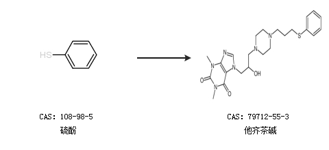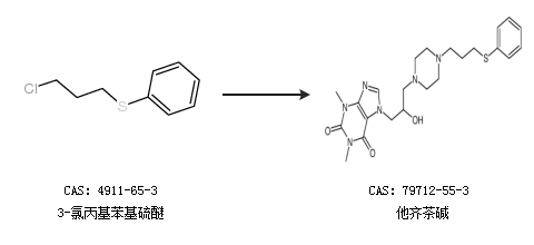1.通过3-氯丙基苯基硫醚合成他齐茶碱