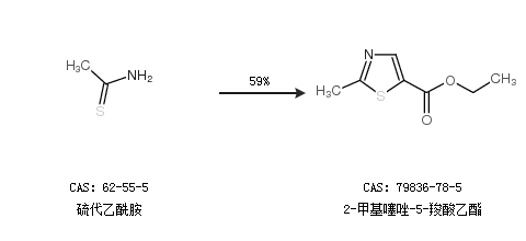 2.通过硫代乙酰胺合成2-甲基噻唑-5-羧酸乙酯,收率约59%;