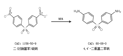 2.通过二(对硝基苯)硫砜合成4,4''-二氨基二苯砜,收率约96%;