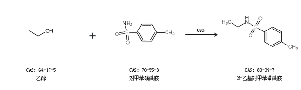 1.通过乙醇和对甲苯磺酰胺合成N-乙基对甲苯磺酰胺,收率约89%;