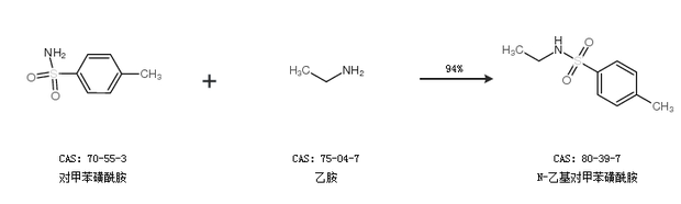 2.通过对甲苯磺酰胺和乙胺合成N-乙基对甲苯磺酰胺,收率约94%;