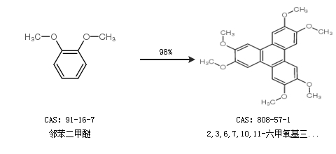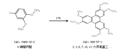 2.通过4-碘藜芦醚合成2,3,6,7,10,11-六甲氧基三亚苯,收率约17%;