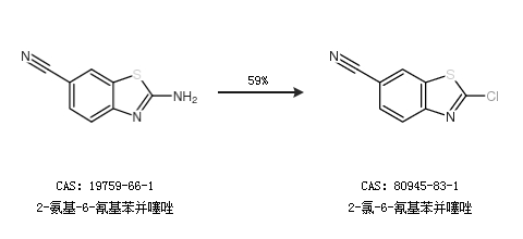 1.通过2-氨基-6-氰基苯并噻唑合成2-氯-6-氰基苯并噻唑,收率约59%;