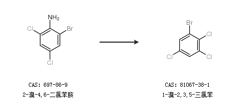 1.通过2-溴-4,6-二氯苯胺合成1-溴-2,3,5-三氯苯