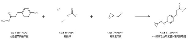 2.通过对羟基苯丙酸甲酯、碳酸钾和环氧氯丙烷合成4-(环氧乙烷甲氧基)-苯丙酸甲酯