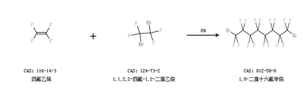 2.通过四氟乙烯和1,1,2,2-四氟-1,2-二溴乙烷合成1,8-二溴十六氟辛烷,收率约8%;