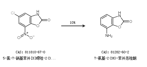 1.通过5-氯-7-硝基苯并[D]噁唑-2(3H)-酮合成7-氨基-2(3H)-苯并恶唑酮,收率约10%;