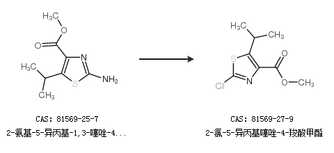 1.通过2-氨基-5-异丙基-1,3-噻唑-4-羧酸甲酯合成2-氯-5-异丙基噻唑-4-羧酸甲酯