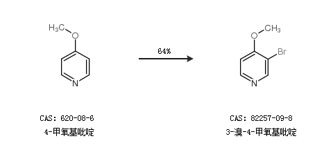 1.通过4-甲氧基吡啶合成3-溴-4-甲氧基吡啶,收率约64%;
