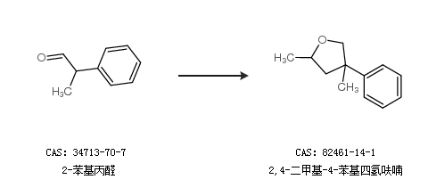 1.通过2-苯基丙醛合成2,4-二甲基-4-苯基四氢呋喃