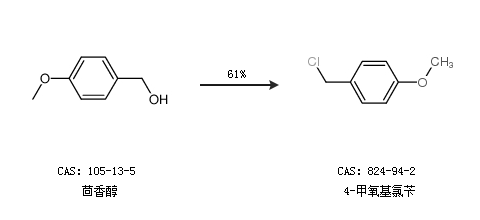 2.通过茴香醇合成4-甲氧基氯苄,收率约61%;