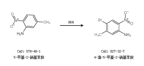 1.通过5-甲基-2-硝基苯胺合成4-溴-5-甲基-2-硝基苯胺,收率约86%;