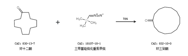 2.通过环十二酮和三甲基硅烷化重氮甲烷合成环三癸酮,收率约78%;