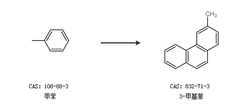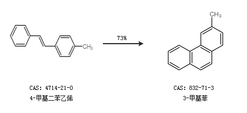 1.通过4-甲基二苯乙烯合成3-甲基菲,收率约73%;