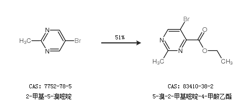 1.通过2-甲基-5-溴嘧啶合成5-溴-2-甲基嘧啶-4-甲酸乙酯,收率约51%;