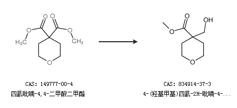 1.通过四氢吡喃-4,4-二甲酸二甲酯合成4-(羟基甲基)四氢-2H-吡喃-4-羧酸甲酯
