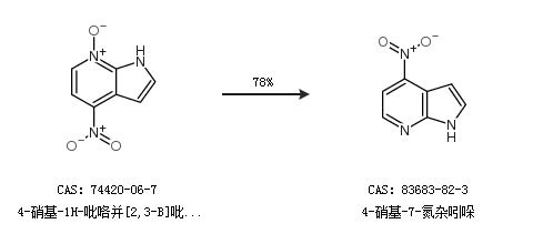 1.通过4-硝基-1H-吡咯并[2,3-B]吡啶-7-氧化物合成4-硝基-7-氮杂吲哚,收率约78%;