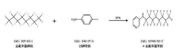 1.通过全氟辛基碘烷和对碘苯胺合成4-全氟辛基苯胺,收率约87%;