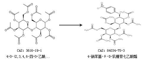 2.通过4-O-(2,3,4,6-四-O-乙酰基)-β-D-吡喃(型)葡糖基-D-吡喃(型)葡糖四乙酸酯合成4-硝苯基-β-D-乳糖苷七乙酸酯