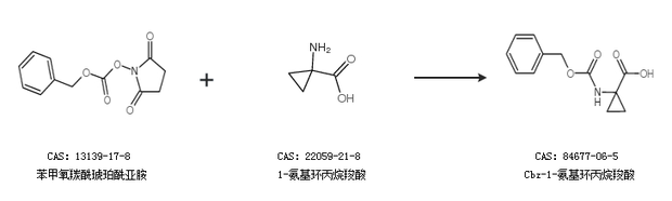 1.通过苯甲氧羰酰琥珀酰亚胺和1-氨基环丙烷羧酸盐酸盐合成Cbz-1-氨基环丙烷羧酸,收率约43%;