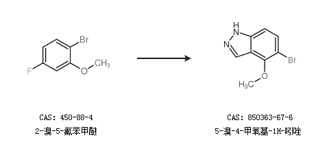 2.通过2-溴-5-氟苯甲醚合成5-溴-4-甲氧基-1H-吲唑