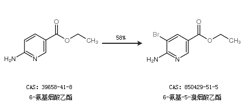 1.通过6-氨基烟酸乙酯合成6-氨基-5-溴烟酸乙酯,收率约58%;