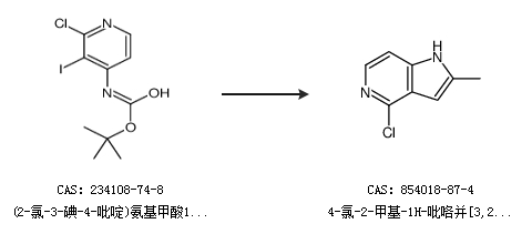 2.通过(2-氯-3-碘-4-吡啶)氨基甲酸1,1-二甲基乙酯合成4-氯-2-甲基-1H-吡咯并[3,2-c]吡啶
