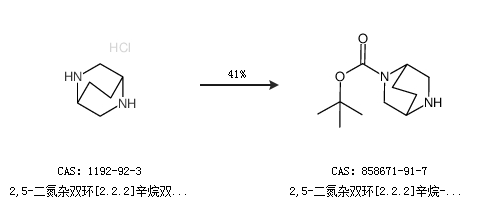 1.通过2,5-二氮杂双环[2.2.2]辛烷双盐酸盐合成2,5-二氮杂双环[2.2.2]辛烷-2-羧酸叔丁酯,收率约41%;