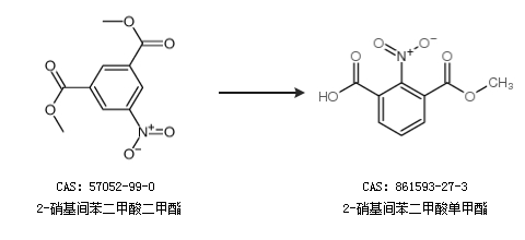1.通过2-硝基间苯二甲酸二甲酯合成2-硝基间苯二甲酸单甲酯
