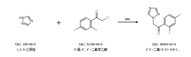 1.通过1,2,4-三氮唑和2-氯-2'',4''-二氟苯乙酮合成2''4''-二氟-2-[1-(1H-1,2,4-三唑基)]苯乙酮,收率约99%;