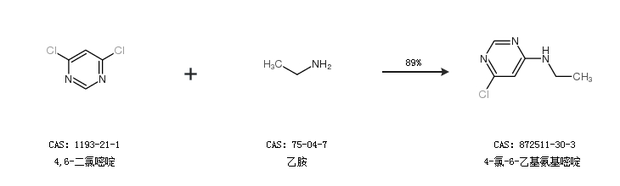 1.通过4,6-二氯嘧啶和乙胺合成4-氯-6-乙基氨基嘧啶,收率约89%;