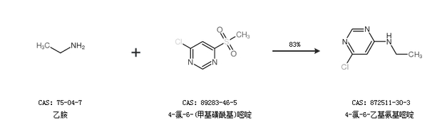 2.通过乙胺和4-氯-6-(甲基磺酰基)嘧啶合成4-氯-6-乙基氨基嘧啶,收率约83%;