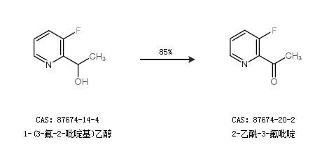 1.通过1-(3-氟-2-吡啶基)乙醇合成2-乙酰-3-氟吡啶,收率约85%;
