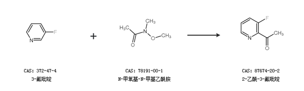 2.通过3-氟吡啶和N-甲氧基-N-甲基乙酰胺合成2-乙酰-3-氟吡啶