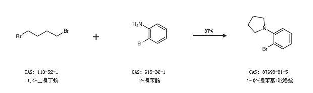 2.通过1,4-二溴丁烷和2-溴苯胺合成1-(2-溴苯基)吡咯烷,收率约87%;