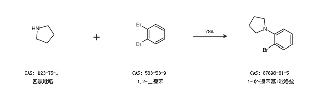 1.通过四氢吡咯和1,2-二溴苯合成1-(2-溴苯基)吡咯烷,收率约78%;