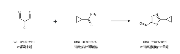 1.通过2-氯马来醛和环丙烷硫代甲酰胺合成2-环丙基噻唑-5-甲醛