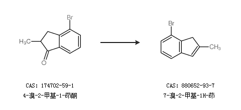 1.通过4-溴-2-甲基-1-茚酮合成7-溴-2-甲基-1H-茚