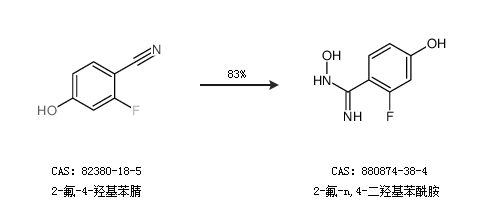 1.通过2-氟-4-羟基苯腈合成2-氟-n,4-二羟基苯酰胺,收率约83%;