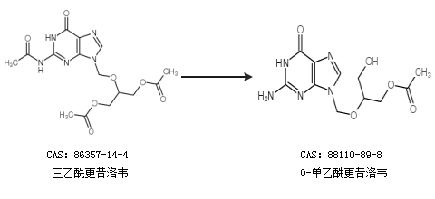 中文别名 9-[[2-(乙酰氧基)-1-(羟基甲基)乙氧基]甲基]-2-氨基-1,9-二氢-6H-嘌呤-6-酮;更昔洛韦单-O-乙酸酯;
